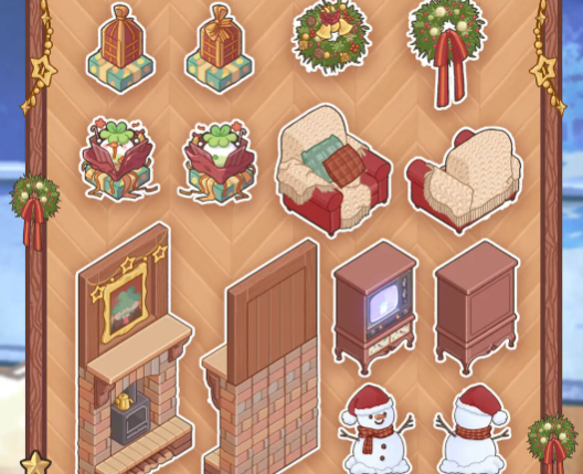 该套装为公测专属福利,无需充值即可直接领取。整套“雪窗暖阁”共含29件定制家具,涵盖发光屋顶、雪花边框、原木质感地板及窗景组件等细节设计,完整还原冬日暖居的视觉叙事。所有家具支持360度自由旋转与无限制摆放——床底、桌侧、墙角均可置入,真正实现空间创意零门槛。这种低操作压力、高表达自由的设计逻辑,尤其适合追求放松体验的泛用户群体。