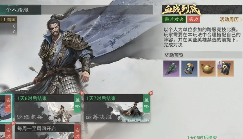 决战洛阳以超大规模洛阳城战场为舞台,四大阵营围绕主城展开动态博弈。同盟需协同占领关键据点,持续积累增益效果,并在适当时机集结主力发起攻城。该玩法高度依赖联盟整体战略规划与实时协作能力。最终成功占据洛阳城,或在积分排行榜登顶的同盟,均可获得专属高价值奖励。此外,针对偏好单人对抗的玩家,同步开放“血战到底”跨服天梯模式。玩家可调用自主培养的英雄阵容进行1v1公平对决。自第二期起,系统将动态禁用登场率过高的英雄,倒逼战术多元化布局。建议预备多套兼容性良好的阵容体系,以提升天梯段位稳定性。赛事固定于每周二、周五准时开启。