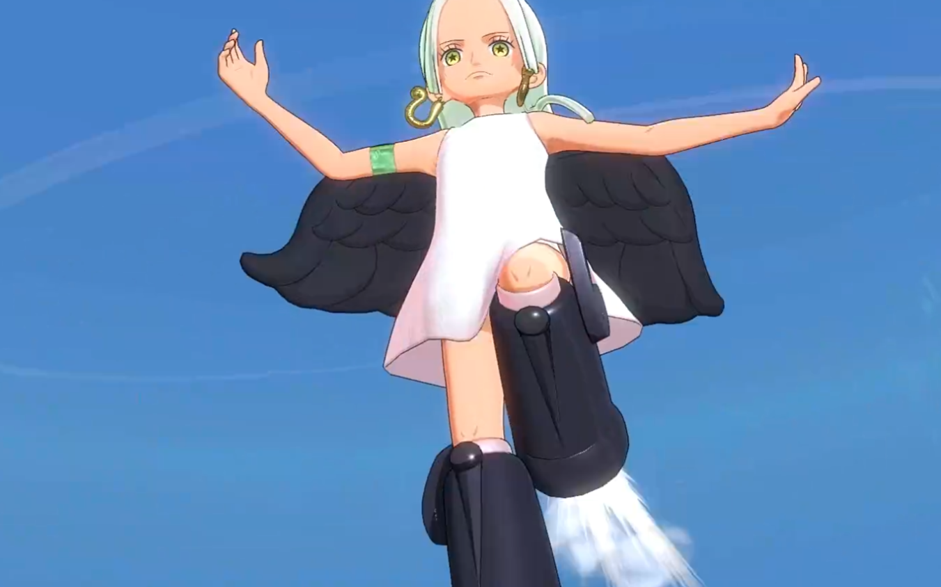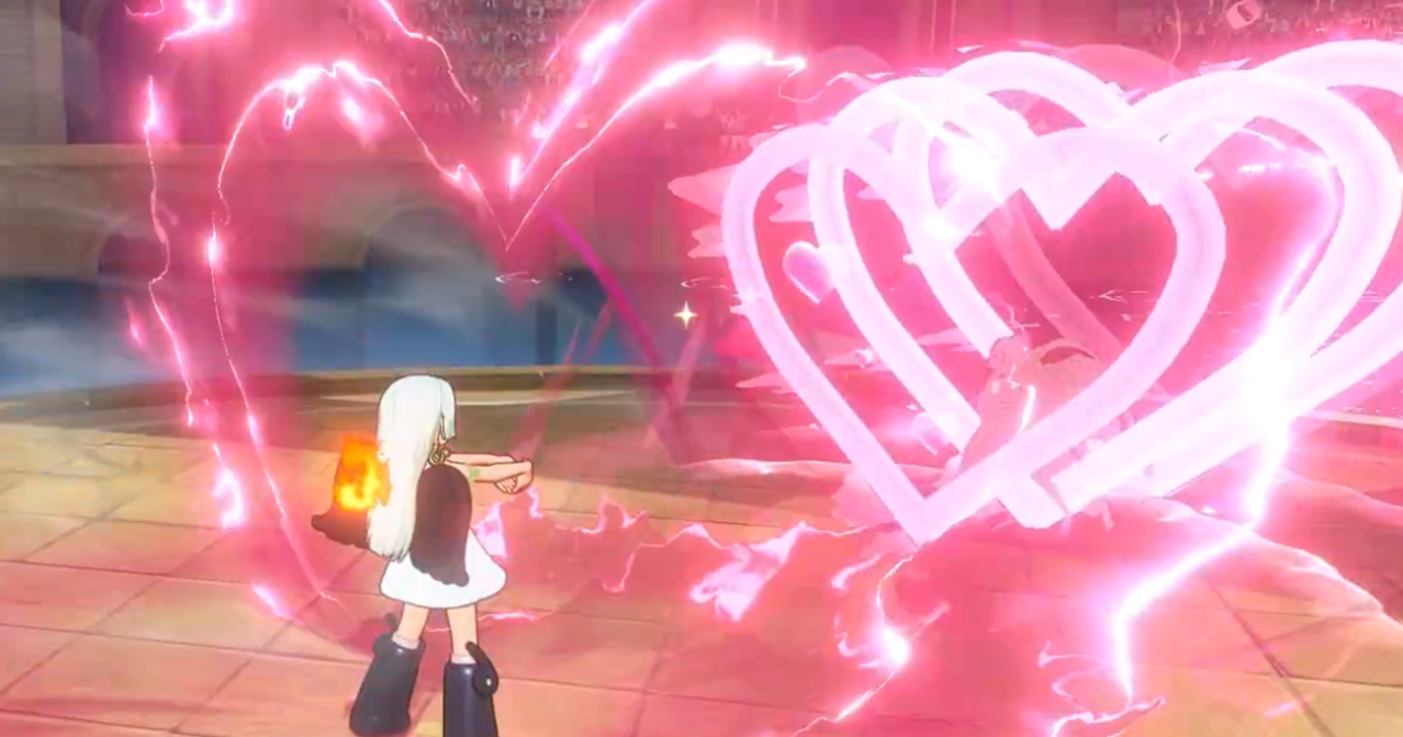 二技能“迅捷芳香脚”强化空中机动性:跃起后直线突袭敌方,背击必石化,正向命中则造成短时僵直;三技能“甜甜甘风”以爱心手势发射定向光束,正面命中即石化,且在空中释放时附带一段前向位移,大幅提升追击与调整站位效率。