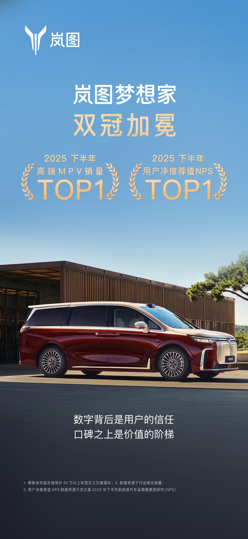 这“双料冠军”的头衔,可不是凭空得来的,它背后是两种截然不同却又相辅相成的胜利。销量第一,意味着岚图梦想家在广阔的市场中经受住了最严苛的考验,消费者们用实实在在的行动投下了信任票,证明它是一款真正成熟、备受认可的产品。而NPS第一,则代表着它在用户心中拥有极高的推荐度,形成了强大的口碑效应和圈层认同,这种信任和偏好一旦建立,就很难被撼动。当销量和口碑珠联璧合,岚图梦想家便完成了从“被选择”到“被推崇”的华丽蜕变。有了这份双重权威认证,它正在重新书写高端MPV的价值体系和评判标准。