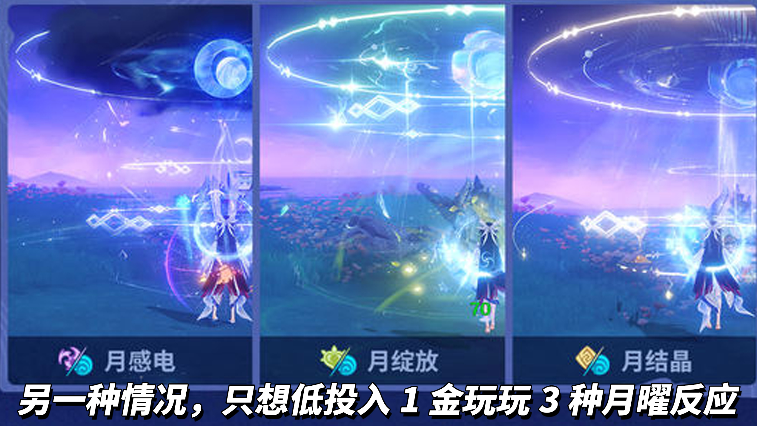 2. 第二种,如果你现在连一个像样的月曜反应体系都没有,又想用较低的投入来过渡一下,那一个金的哥伦比娅就能帮你解锁三种反应玩法。这样一来,遇到那些需要特定反应来克制的敌人时,你也有了应对手段,而且还能帮你更好地攒下原石,为后续更心仪的角色做准备。
