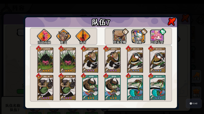 武学卡分别是十面埋伏、灵猴棍法、破天刀法、弹指一刹、烈风斩、独行刀法各两张,其中囊括了8张图系卡和4张风系卡。再来说一下自动战斗设置下的武学设定顺序,破天刀法、烈风斩、剑魔武学、十面埋伏、灵猴棍法、独行刀法、弹指一刹、兔子武学、狮子武学,按照这一自动战斗的武学释放顺序,能够不断压制敌方血量值。