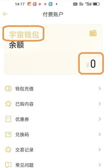 3. 点击【付费账户】后,页面会自动跳转到您的专属资金管理界面。在这里,您就能在【宇宙账户】区域清晰地看到您当前的账户余额了。