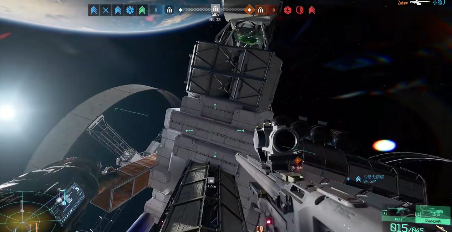 S4赛季构建了多维度的太空作战场景,涵盖空间站残骸、小行星带、深空科研平台及轨道防御环带等差异化环境。每个地图均具备独立的空间结构逻辑与视觉叙事体系,战场纵深达数公里级,配合无重力漂移、磁轨加速跃迁、舱体穿凿等机制,强化真实宇宙作战沉浸感。场景美术采用硬科幻基调,光影反射、星云背景与动态天体系统同步演算,确保每场对局都具备独特空间节奏。