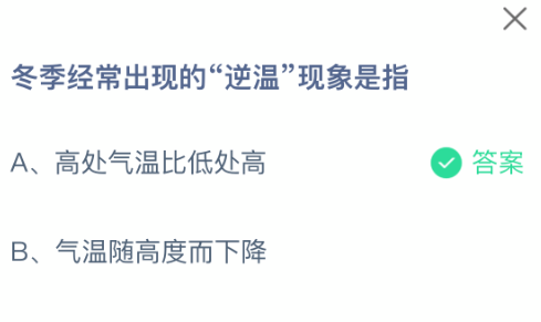 您的位置:首页 >冬季经常出现的逆温现象是指-支付宝蚂蚁庄园2026年1月19日答案最新