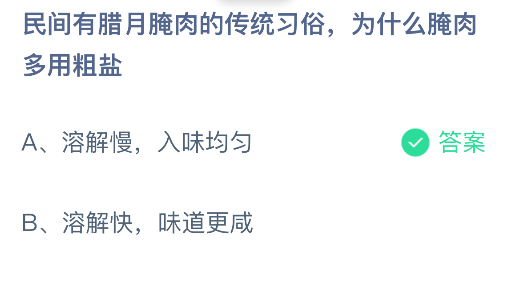 您的位置:首页 >民间有腊月腌肉的传统习俗为什么腌肉多用粗盐-支付宝蚂蚁庄园2026年1月19日答案最新
