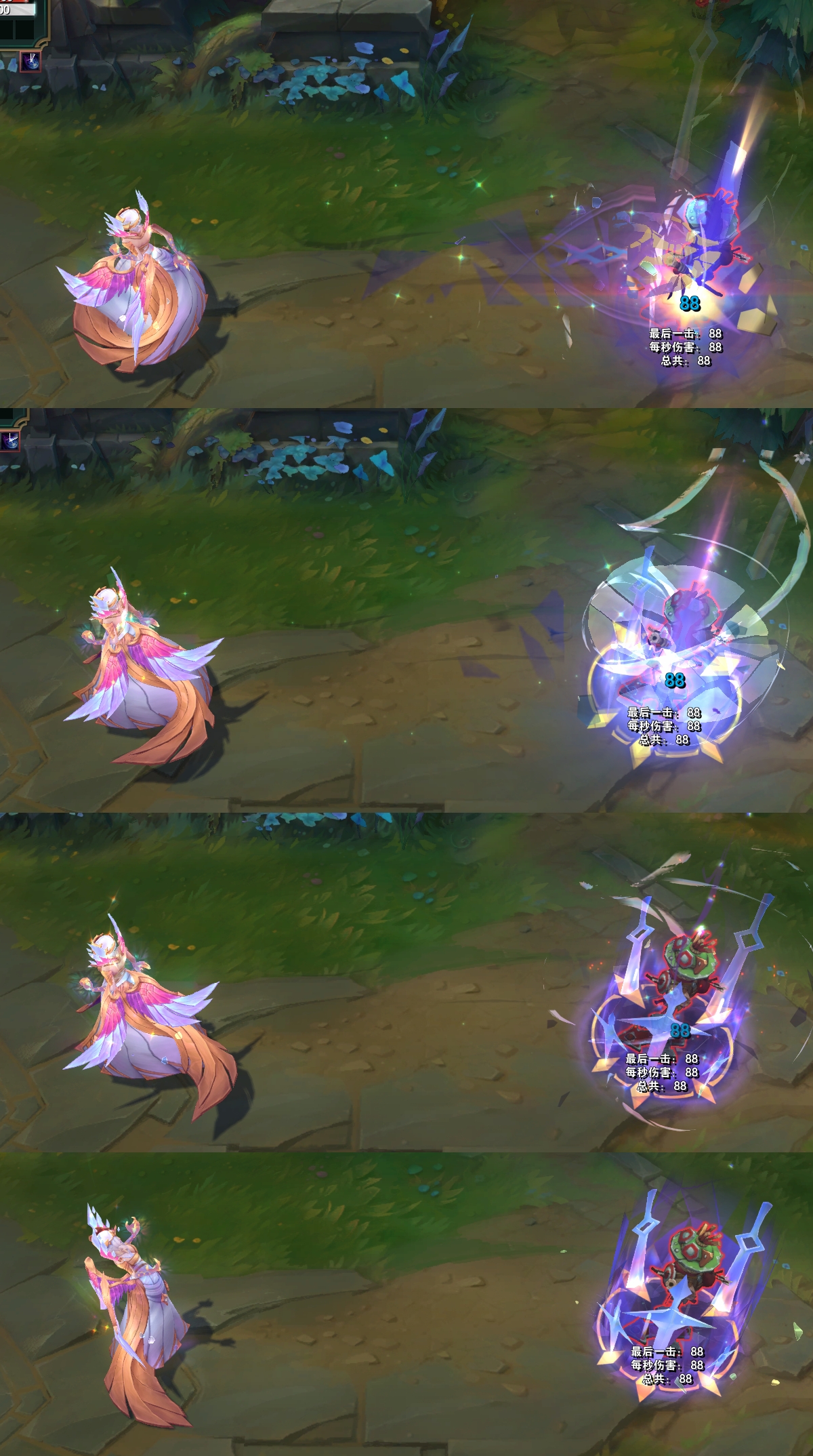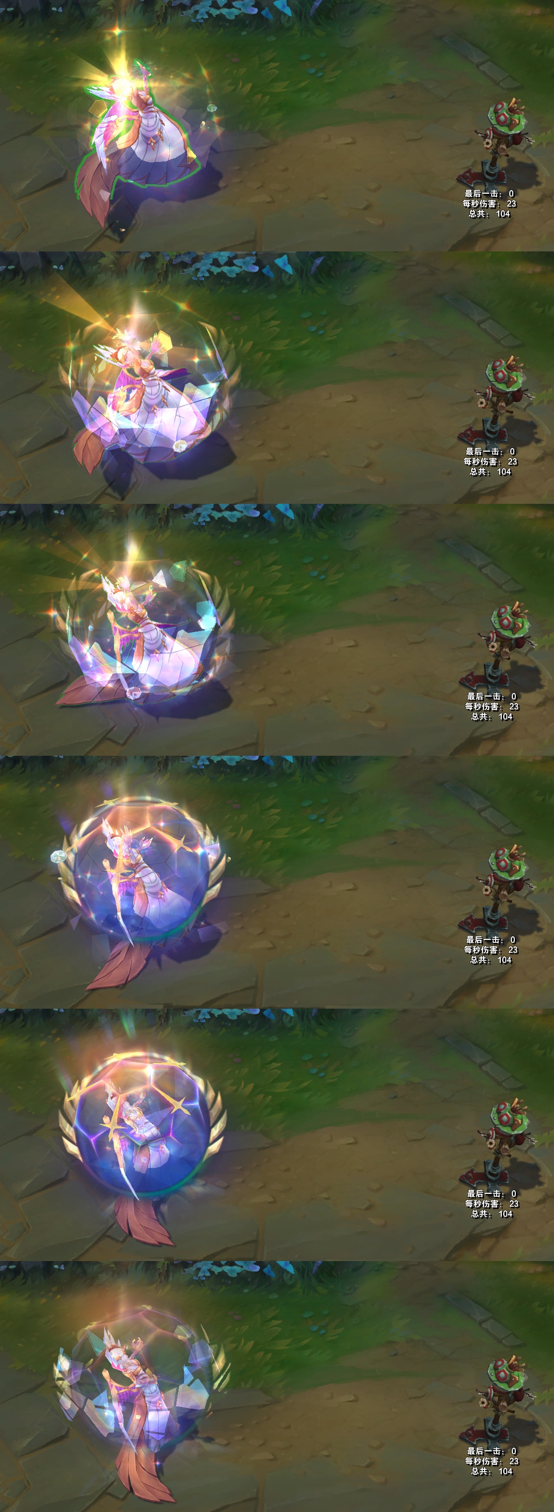 结束时,身体会变成紫色的水晶,周围出现环绕着的光效。