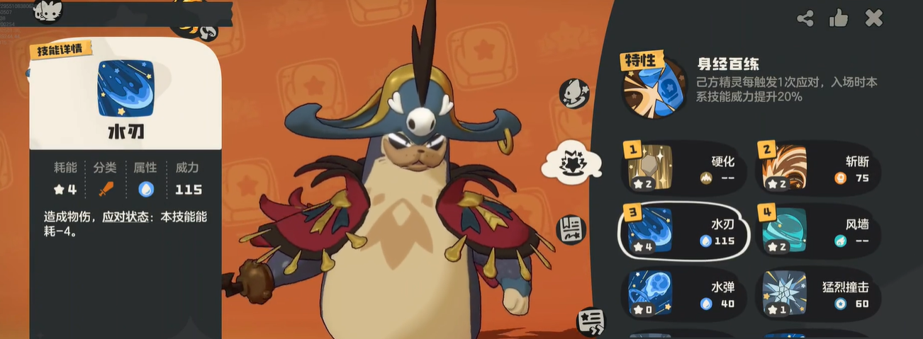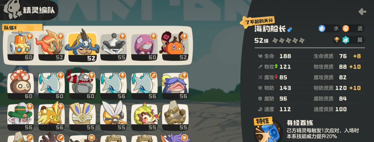 虽然整个队伍是利用5系宠物形成战场积累被动的,但是也依赖天气说快速开启天气的时机,在这两种状态的加持下形成了一个双buff叠加的效应。最主要的生存和输出力量来源于武系的被动技能,配合雨天强化水系技能的方式,轻松实现了每一场战斗中的高效清场。关键回合挡拆或者是在保护极其脆弱的角色时,可以利用风墙的技能有效的解决这一问题。