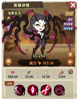 虫群女王是一个十分强力的输出英雄,其针对生命上限的碾压伤害能够在战场上精专于持续输出与压制对手。主动技能可以瞬间重创三名敌人,尤其对辅助造成毁灭性打击,并大幅提升自身暴击。被动让他能通过队友施法快速回能回血,实现技能永动;普攻则精准针对后排、偷取攻击力并削减能量,持续压制敌方的后排英雄。