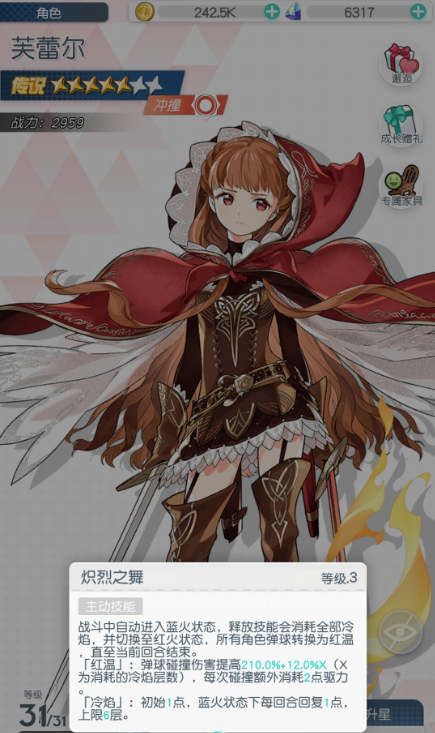 第三个为大家推荐的是芙蕾尔,芙蕾尔在当前的强度上面也是被大家用作一个基础C位来使用的,她如果放在冲撞效果里面使用的话,利用自己的技能可以大幅度提升自身的一个被动伤害,而且利用自身的弹力效果可以带来的驱力,也就是碰撞次数也会更多一些,所以放在这里的话,芙蕾尔觉醒了之后再来一个大幅度提升,觉醒会让她的伤害数值更高一些,所以在冲撞队里面,芙蕾尔如果放在主要核心输出位置上面使用的话,对于一些boss类型的敌人来说是非常适合针对使用的,当然芙蕾尔有这么强的能力,同时弱点肯定也是有的,就是对球的特技效果上面是没有其他技能效果那么好叠加起来的,这一点大家就要依靠其他的队友来进行叠加。