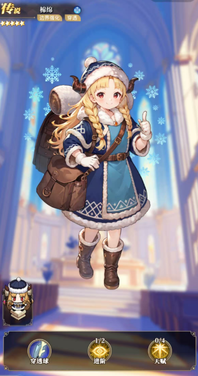 艾莉:具有最特殊的能力就是弹幕吸收,拥有这个能力的角色大家是比较少见的,在当前的效果当中大家可以用她的减速控场创造我方的优势,场内可以对命中的敌人施加减速影响,并通过这里的吸收途径接触到的敌方弹幕,战斗中进阶以后弹球伤害提高30%的同时自身耐久也有提升,特别是这里羊绒每次吸收敌方弹幕之后,她的伤害都会提高10%,最多是可以累积到10层的,后续带来的控制里面是可以通过羊绒直径扩大的效果,让她带来减速的同时,给目标附加20%的易伤效果,所以在控制当中有自己的使用效果。