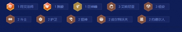 1巨神峰、3艾欧尼亚、3祖安、2斗士、2护卫、2狙神、2皮尔特沃夫、2约德尔人