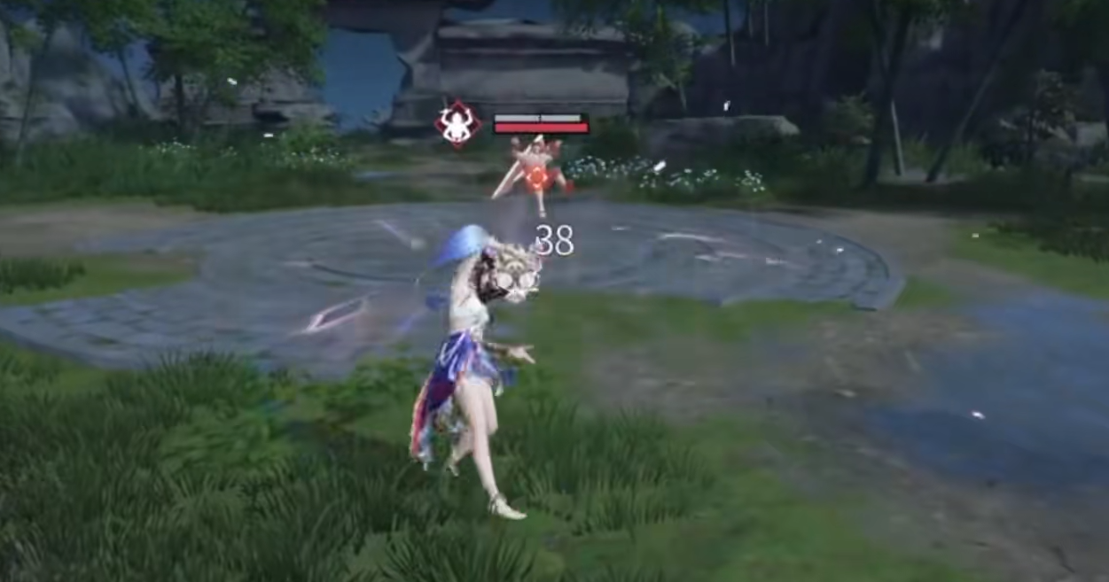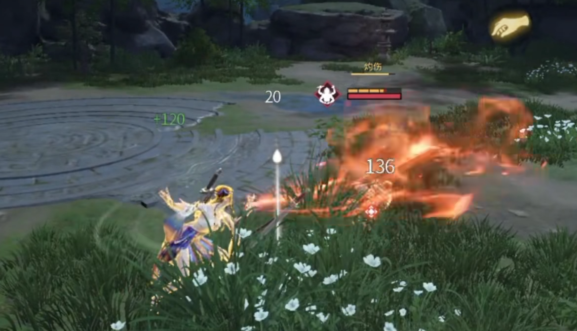 方诺一技能“傩舞”具备位移与反制双重特性:施放时向后轻盈跃步,同时在原地生成一枚傩面;傩面延迟爆炸,对范围内敌人造成击飞效果。若该技能释放过程中被振刀命中并触发白霸体判定,则本次所受伤害将被暂存,并于下一次“傩舞”命中时全额返还给目标。