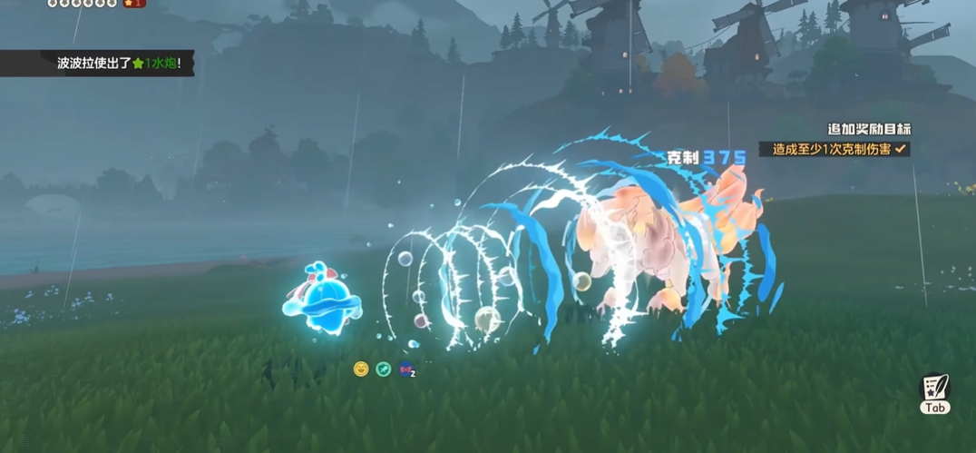 3号技能推荐“水光冲击”,作为稳定输出手段,可对单体目标造成140点魔法伤害;4号技能可在“魔能爆”与“当头棒喝”之间择一装配:“魔能爆”的伤害随自身魔力消耗量提升而增强;“当头棒喝”则在切换出场精灵时自动触发,对当前目标施加一次高额固定伤害。