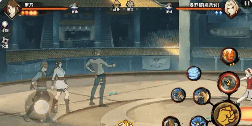 奥义技“砂阵连击”展现砂隐特色战术配合:瞬间同步召唤志志雄与光司共同入场,志志雄施加隐身效果,使雨乃与光司进入不可见状态;随后三人协同前突,对敌方目标发起多段连续打击;终结阶段雨乃率先解除隐身,以水螳螂完成强力斩击,实现高爆发收尾。