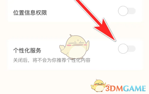 4、关闭按钮,即可禁止推荐个性化内容。