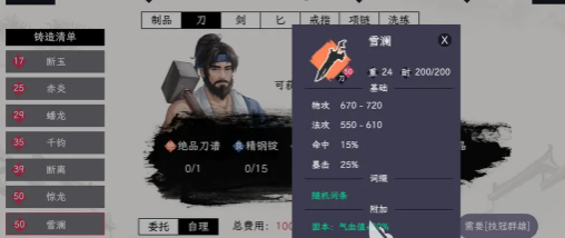 毒防属性也是不可以缺少的,装备品级越高,可以洗练的词条数量也就越多。橙色装备最多拥有4个词条位置,说明拥有更多定制化的可能,可以搭配出全能的组合,让闯荡江湖变得更有底气。洗练,铸造还能够形成战斗力闭环,大家可以通过铸造去获取高品级的装备。经过洗练优化词条之后,然后通过注灵能进一步的强化属性,例如绝品雪澜刀,基础物理性攻击就达到了670在经过洗练之后,就可以增加25%的暴击并且还可以增加10%的命中。这就可以成为斩妖除魔的一把利器,让玩家拥有更多的优势。
