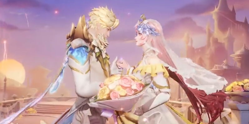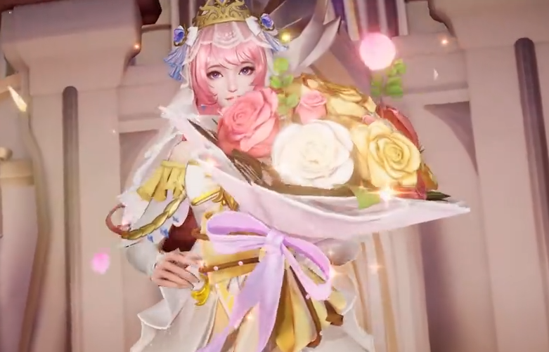 1、品质定位:大乔沐霞之诺皮肤是限定皮肤,整体以白金为底色,层叠设计的短款婚纱,梦幻优雅。粉色披肩长发,搭配镂空皇冠与轻盈头纱,气质温柔。缀以金色荆棘,突显华美格调。武器化作手中三色交织的捧花,与霞光交相映衬。