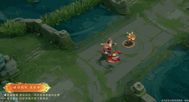 盘古的普攻和被动普攻都充满了力量感。每一次挥舞,都仿佛能听到英歌舞者那充满节奏感的鼓点,视觉效果非常流畅且富有冲击力。
