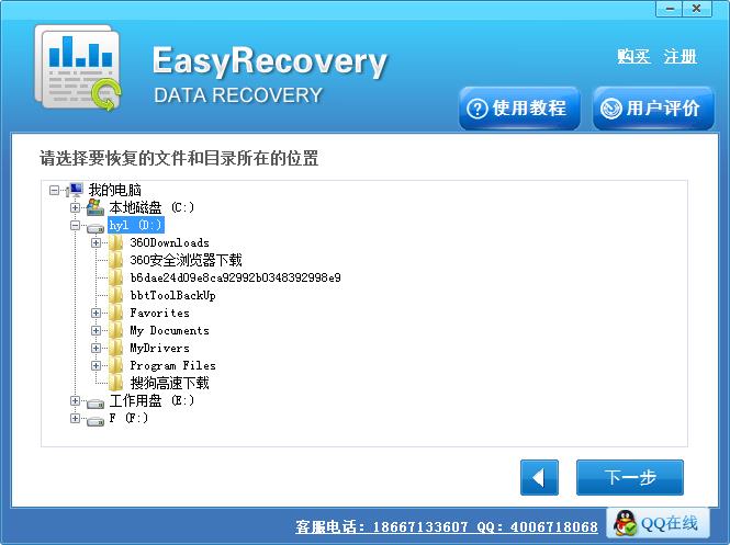 请选择要扫描的分区,软件将会显示电脑储存分区,这里请选择误删除文件所在的位置,然后点击“下一步”按钮;