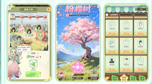 完成居民订单中的粉樱订单,收集粉樱花瓣后在粉樱树下祈愿,随机抽取时装部件。