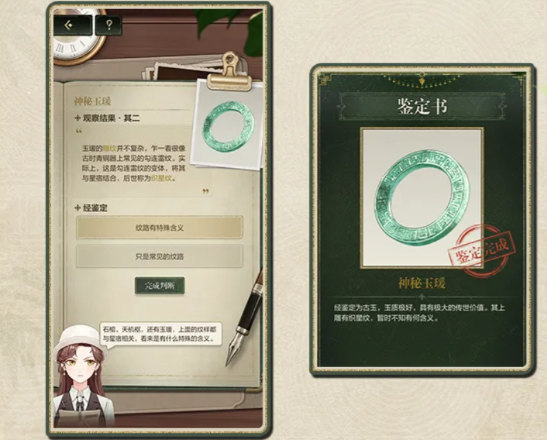 当然,除了主线任务的紧张刺激,活动里还有很多其他有趣的内容。比如那个“珍宝鉴定”环节,可不是随便看看就能搞定的!我们需要像真正的鉴宝师一样,仔细观察每件器物的形状、上面的花纹、用的什么材料,还有它的保存状况等等,把所有信息都整合起来,才能写出一份专业的《珍宝鉴定书》,给出最终的判断。这可太考验我们的眼力劲和细心程度了!更棒的是,在每次调查的间隙,四位男主还会分别邀请我们去完成一些独立的委托。我们可以自由选择和谁一起去,然后就能解锁和那个角色相关的古物故事支线,深入了解他们眼中的世界和那些宝藏的秘密。想想都觉得浪漫又充满挑战!