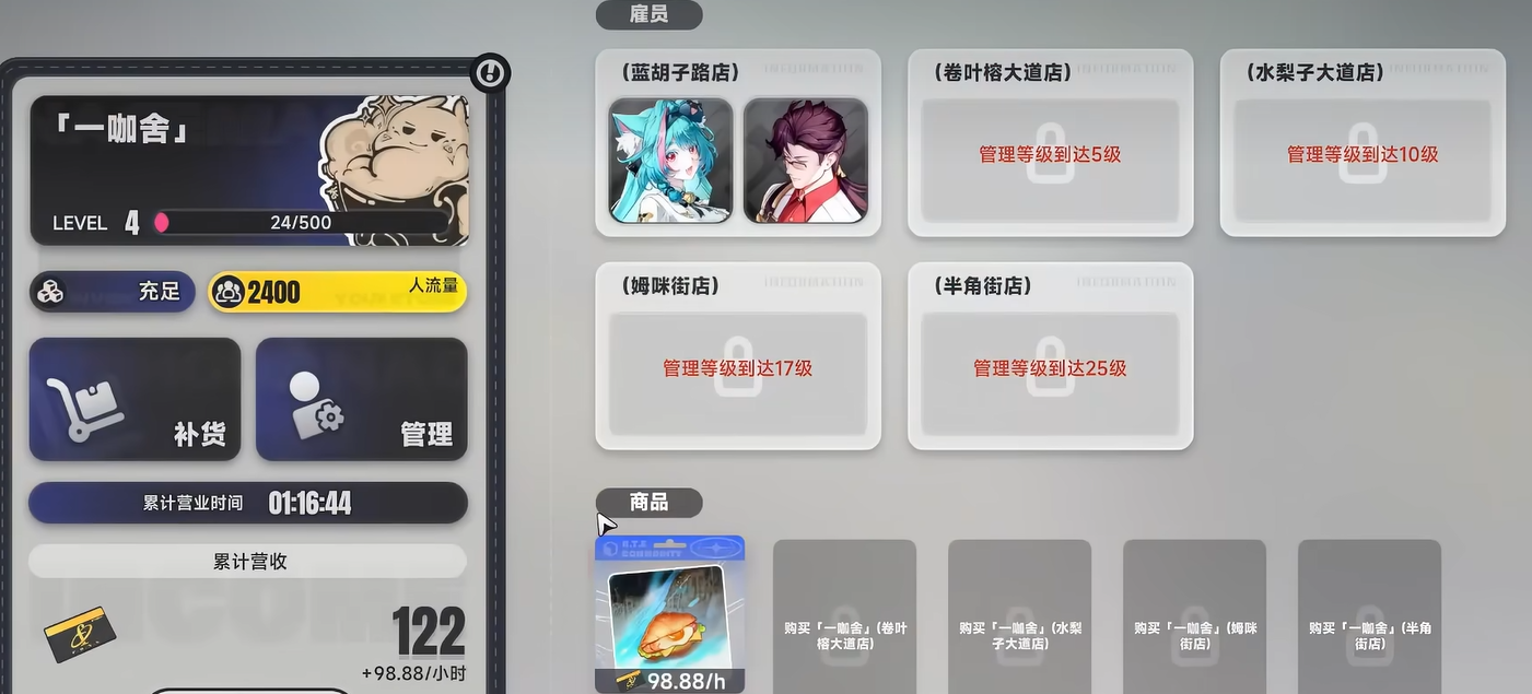 看到这里肯定有人要问了,800万方斯得攒多久才够。光靠系统每天送的那点确实不太现实,这时候就要用到经营店铺这个玩法了。通过经营店铺赚到的方斯可以提升管理值,管理值越高能买的商铺就越多,还能研发价值更高的商品。如果不算各种加成倍率的话,每天通过店铺稳定赚个三四万方斯问题不大。