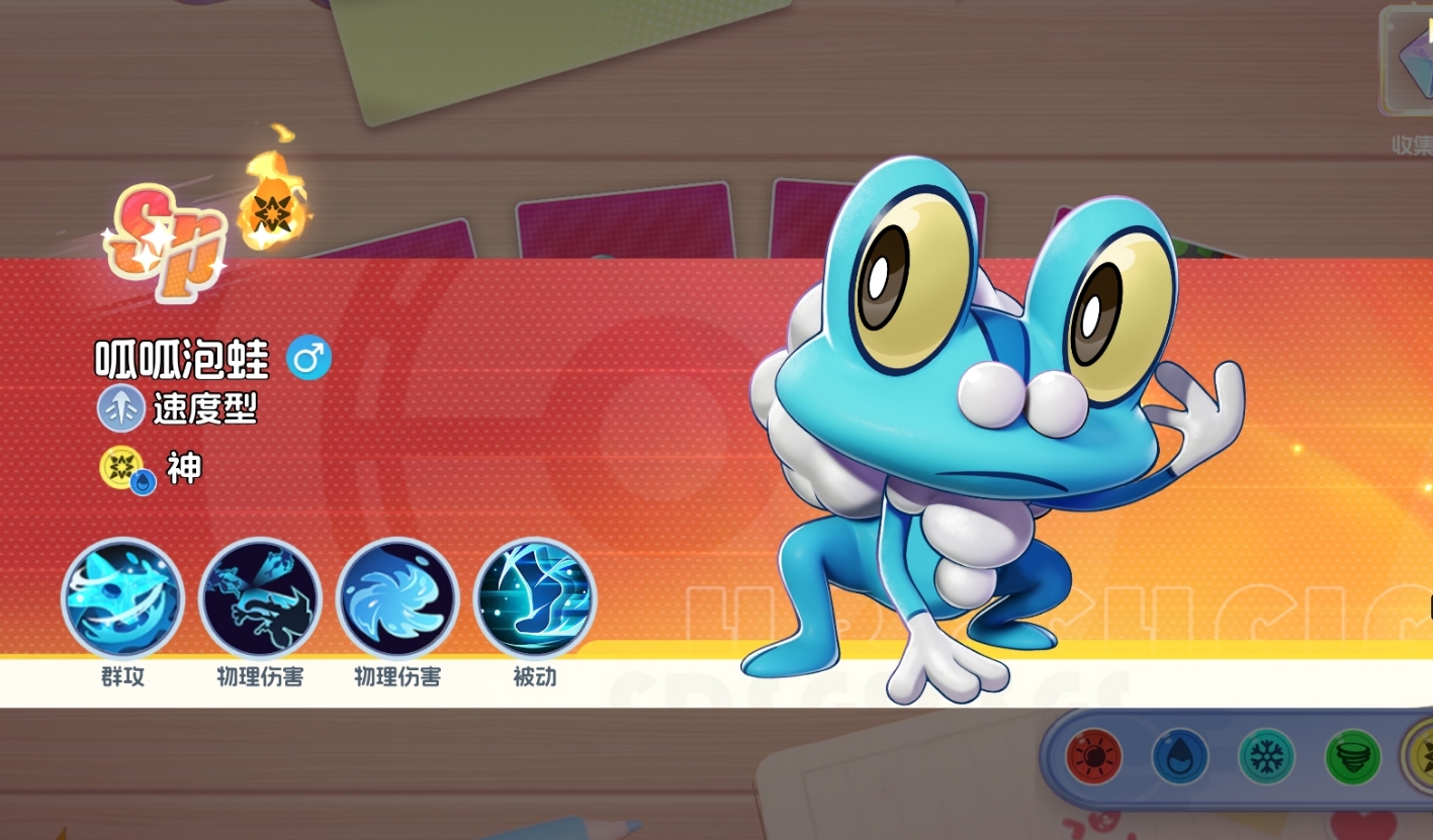 宠物集结呱呱泡蛙强度怎么样?呱呱泡蛙是速度型宝可梦中的一员,也是宠物集结里初始品级为SP级的宝可梦,可在初入游戏后从SP抽卡和全宝可梦赠送中免费拿到手。那么,宠物集结呱呱泡蛙值得练吗?其实,呱呱泡蛙的强度很是不错,作为SP级宝可梦的它有着极高的数值,成长性也格外出色,所以值得玩家为它投入资源。
