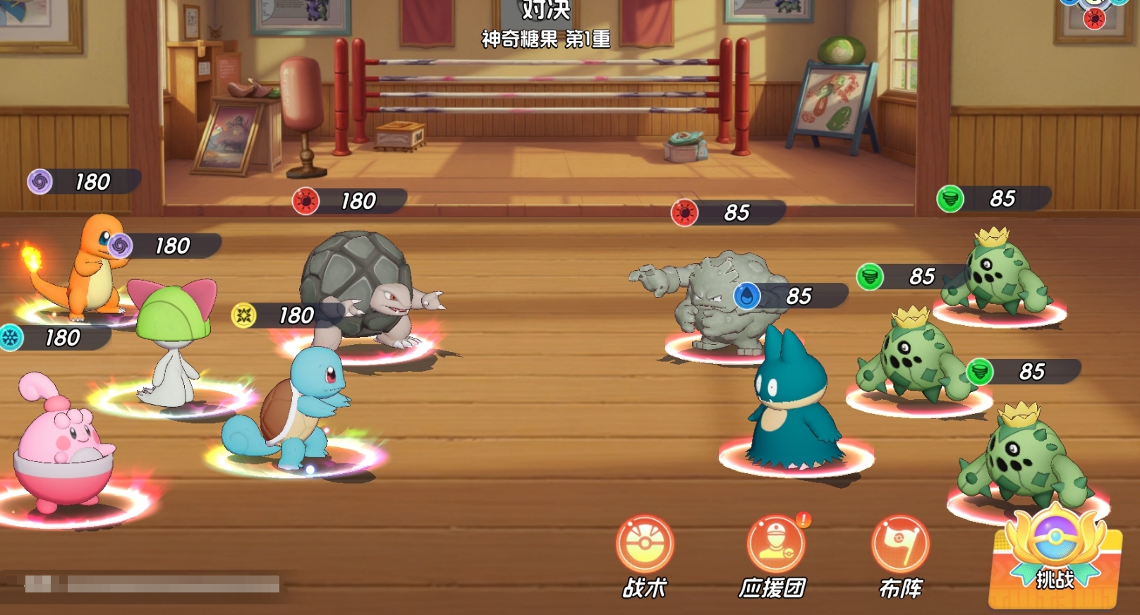 实战时,只要敌方雪阵营的宝可梦不是特别多,且输出主力不是雪阵营,那么都可以安排隆隆石上场作战。通常它会与其他防御型宝可梦组成双前排在队伍前方进行承受,并利用大招的控制来协助队伍里的其他宝可梦进行控场,所以也令隆隆岩更适合单核队。目前比较合适的配队方案为隆隆岩、小火龙、拉鲁拉丝、杰尼龟和小福蛋,其中隆隆岩和杰尼龟的双前排都有较强的控制,拉鲁拉丝负责控场,并与小福蛋一起保障队伍的持续输出能力,所有的输出重任交给小火龙即可。当然,没有小火龙时,也可用帽子皮卡丘来替代。