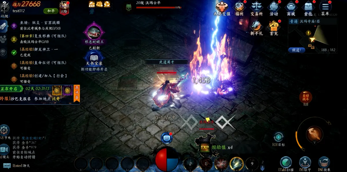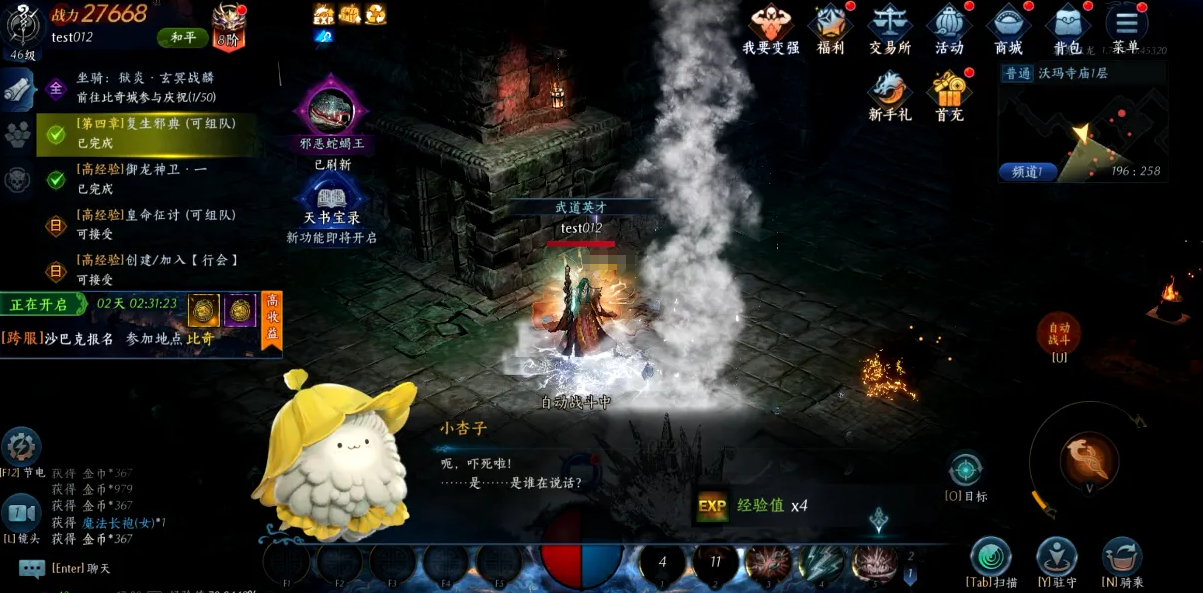 职业初期,应优先保障基础作战循环的成型。主升【召唤神兽】与【灵魂火符】是关键选择:前者提供稳定承伤单位,承担大部分小怪与副本杂兵伤害;后者为道士主要远程法术输出手段,伤害频率高、施法流畅,二者配合可实现“神兽抗怪—玩家站桩输出”的高效单刷节奏,完全满足新手期日常任务、低阶副本及挂机练级需求。