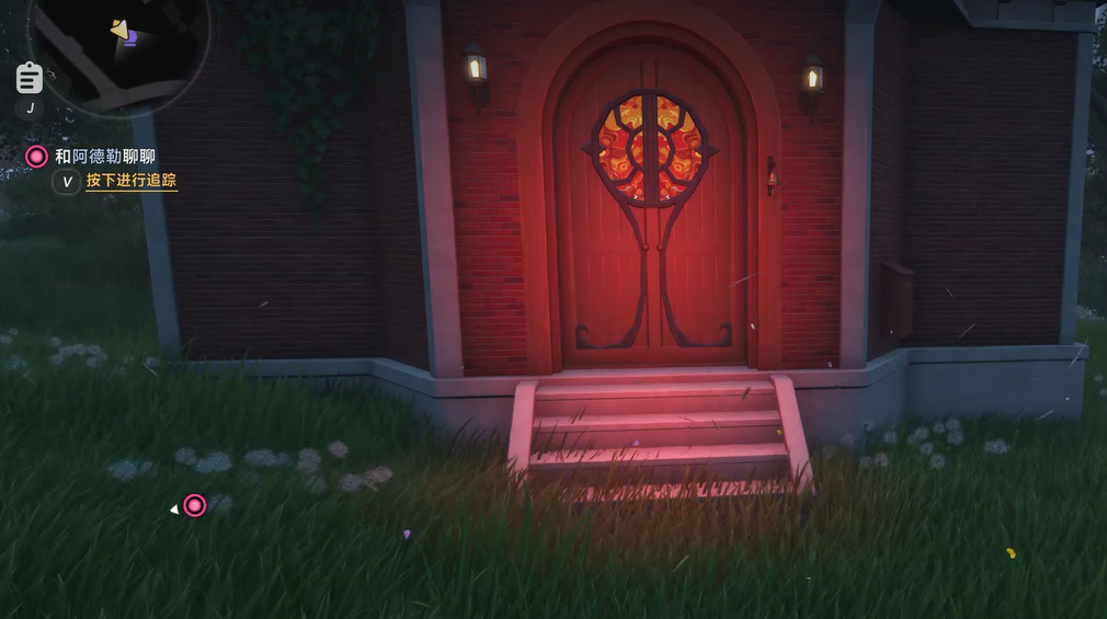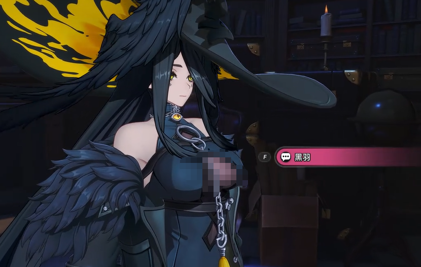 到了地方之后,会看到一栋红色的小房子,这个房子挺有特色的,一眼就能认出来。走到房子跟前,对着门敲一下,就会触发一段过场动画,画面里会先闪过一顶黑色的帽子,然后一个穿着魔女风格服装的人物就出现了,她就是魔女之家的主人黑羽。