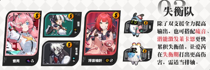绝区零爱芮怎么配队,爱芮核心输出主要通过不断吸收【应援能量】来连续发动【普通攻击:绝对音准】第三段触发【核心技】的【异放】伤害来进行输出,可搭配【击破】角色进行失衡期间的爆发输出。