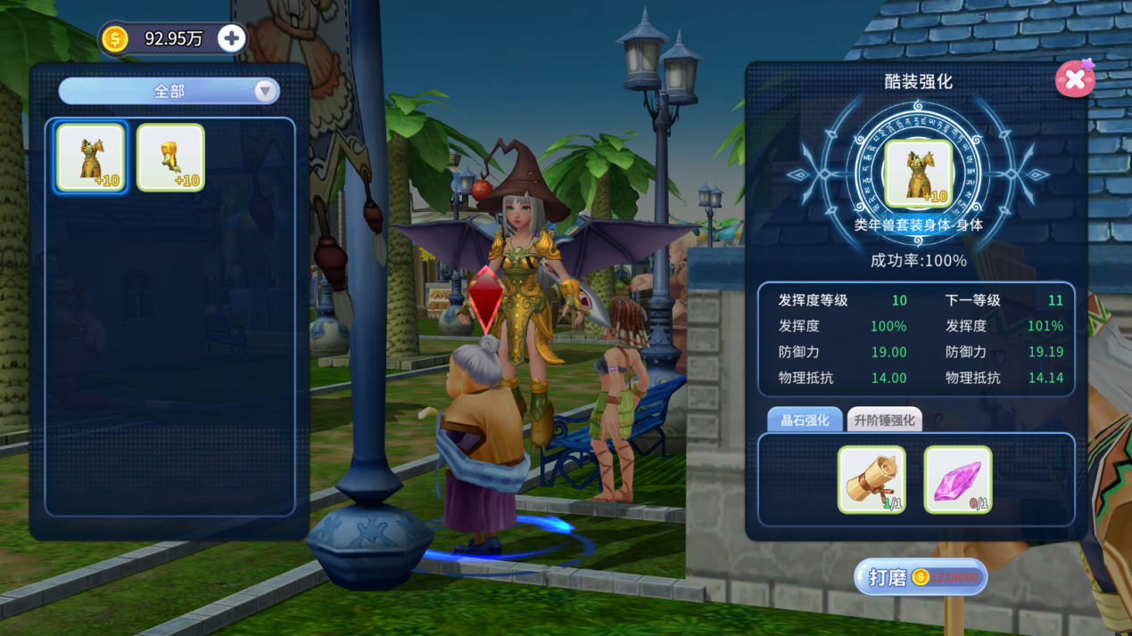 购买成功后玩家可穿戴自己的酷装,并对酷装和装备进行融合。融合是酷装获取属性的关键,将普通装备的属性转移至酷装,同时保留酷装外观。