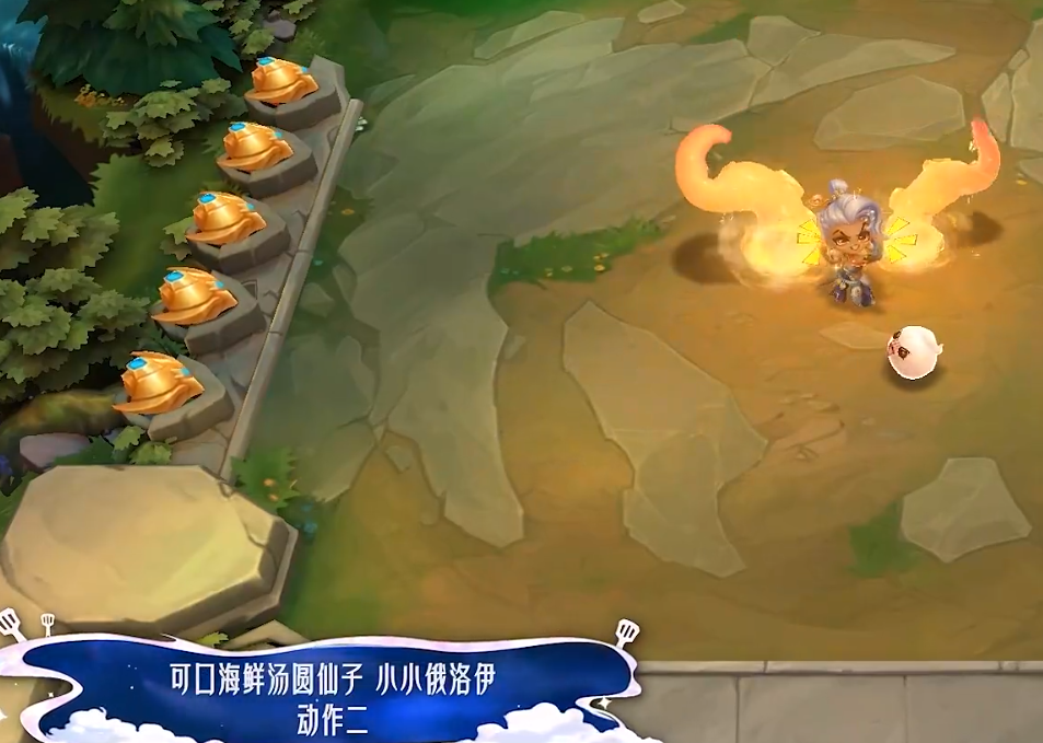 可口海鲜汤圆仙子小小俄洛伊以海鲜+汤圆为核心主题,白发萌系造型,周身环绕暖橙金色的汤圆/海鲜蒸汽特效光效,以下是金铲铲之战可口海鲜汤圆仙子小小俄洛伊特效一览,一起来看看吧。