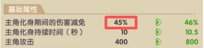 2、在此之中,最为关键的便是化身期间提供的伤害减免,以1星橙化身为例,开启期间直接提供45%的伤害减免,搭配上其他加成,主角肉度可以原地提高至少一倍。这意味着在同等战力、同等输出的情况下,开化身只需消耗不到半血就可以击杀满血对手,含金量不言而喻。