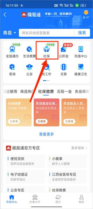 4、进入社保后,找到社保缴费模块,然后选择【城乡居民医疗保险缴费】