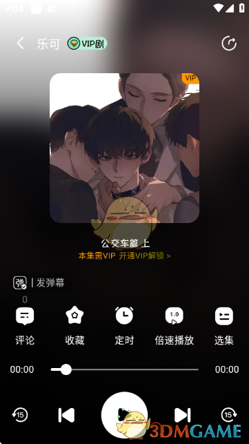 进入广播剧播放界面,可进行评论、收藏、设置定时、调整倍速播放、选择选集等操作,开始收听广播剧。