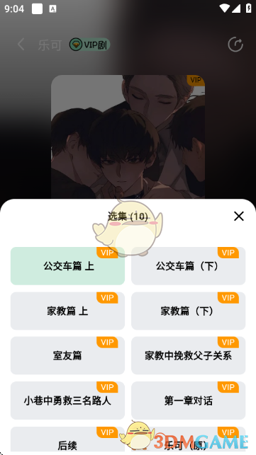 在选集界面,可选择不同的剧集(如“公交车篇上”“家教篇上”等),根据喜好选择收听内容。