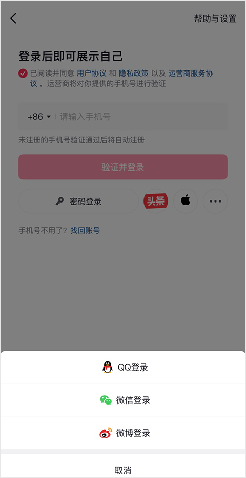抖音的注册登录方式主要包括:手机号码、微信、QQ、头条号和微博。账号一般分为个人号和企业蓝V。
