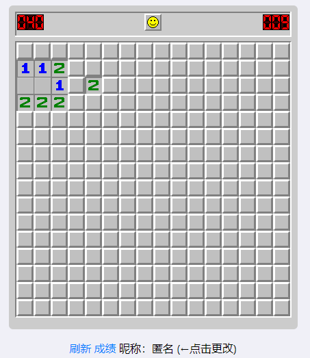 第一次点击不会触雷。方格中的数字表示周围有多少雷。 游戏的目标是找出所有的雷。如果你被雷击中,你就会输掉游戏。点击表情符号重新开始。 两选一留最后再选择,使用魔法加速扫雷速度,但会有广告,修改你的昵称参与排名。在周一最容易进入前100名,逐渐减少,在周日进入前100名最难。