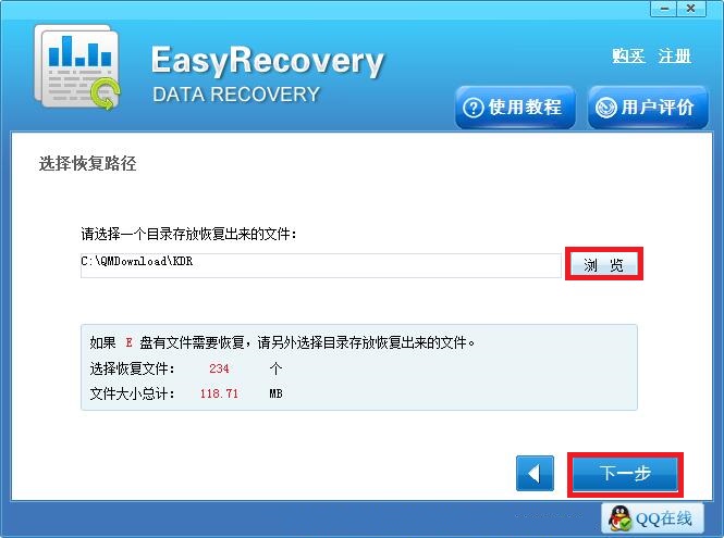 第四步:点击“浏览”按钮自定义选择好恢复后文件所需的存储位置,再点击右下角的“下一步”按钮,软件就开始恢复选中的文件了,待恢复完成之后可前往存储位置查看结果。