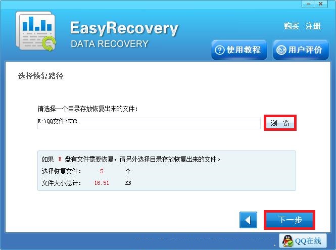 第四步:之后点击“浏览”按钮自定义选择好恢复后文件所需的存储位置之后,点击“下一步”按钮,软件就开始恢复选中的文件了,待恢复完成之后即可前往存储位置查看结果了。