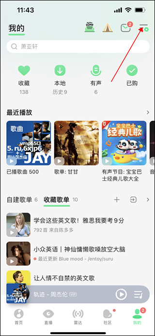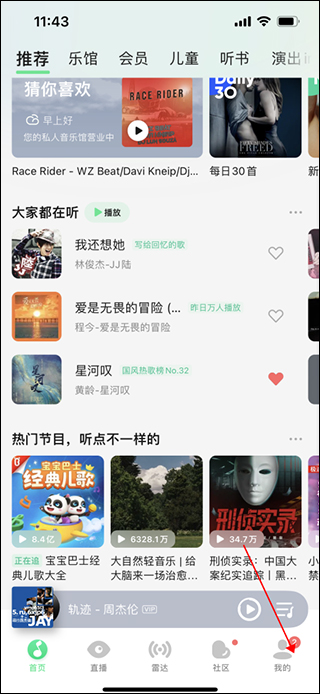 1、打开qq音乐app,进入app首页,点击页面右下方的“我的”按钮;