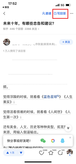 2、进入问题页面后,点击屏幕上方的“写回答”选项;