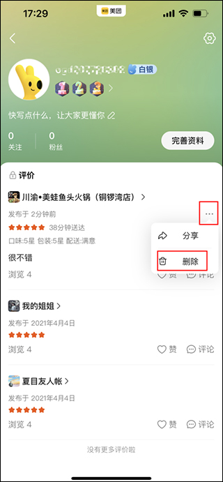 您的位置:首页 >美团怎么删除自己的评价?美团删除自己的评价方法教程