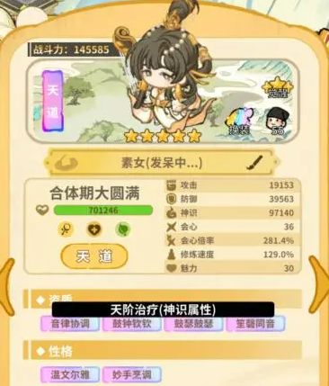 再来说性格。性格分为第一性格和第二性格,两者作用不同。第二性格是固定只影响生产速度的,不影响战斗,这块不用纠结,也没有必要花资源洗。第一性格才是影响弟子战斗属性基础数值的部分。战斗弟子第一性格建议洗练和自己主要属性对应的方向,比如输出弟子洗攻击或者神识对应的性格,坦克洗生命或者防御方向的性格,这样能让基础数值往对的方向偏移,实际效果更明显。