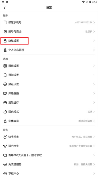 3、进入页面后点击隐私设置