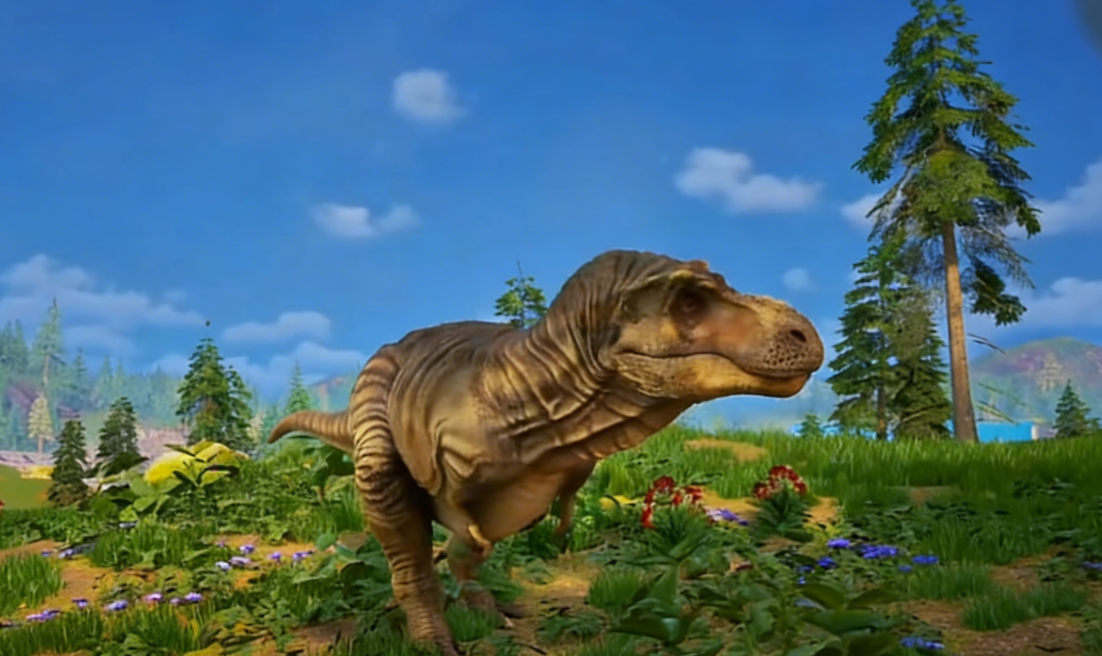 还有擅长地形作战和团队合作的双冠龙和在混战中表现突出的特暴龙。双冠龙头顶皇冠、口含毒液,适合狭窄地形配合队友集火,远近切换自如,能有效削弱敌人的护甲;特暴龙由于扁平的头部和锯齿利齿,在大规模战斗中先击杀中等血量的目标,快速积累增益Buff,越战越强。前者是经验丰富的老将,后者是一位能扭转局面的尖刀,二者都是不可取代的力量,在各种战术体系中发挥着无法替代的作用。