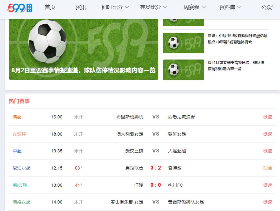 599比分是一款提供足球赛事资讯的工具,支持实时比分查看和论坛讨论。网页版入口链接为https://www.599.com/,进入后可浏览足球内容,登录后可保存查看记录,方便快速访问。