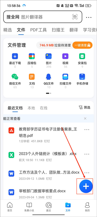 1、在首页的位置点击下方导航栏的【文件】